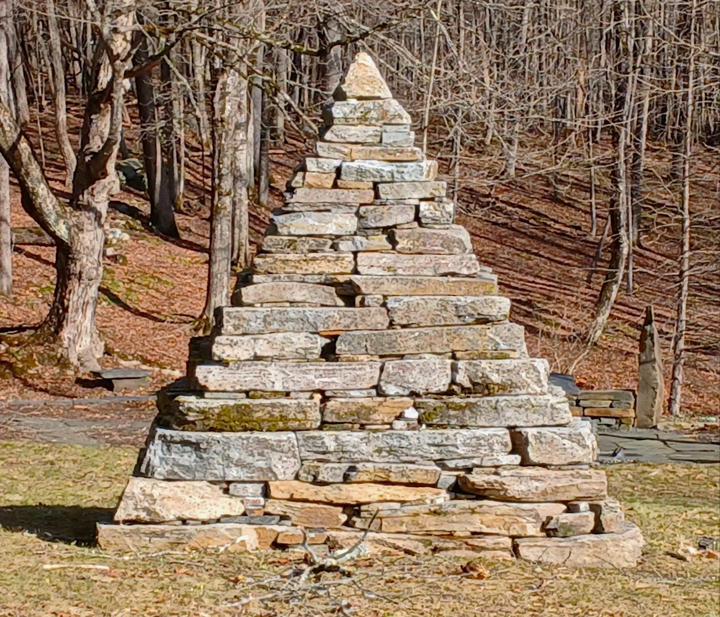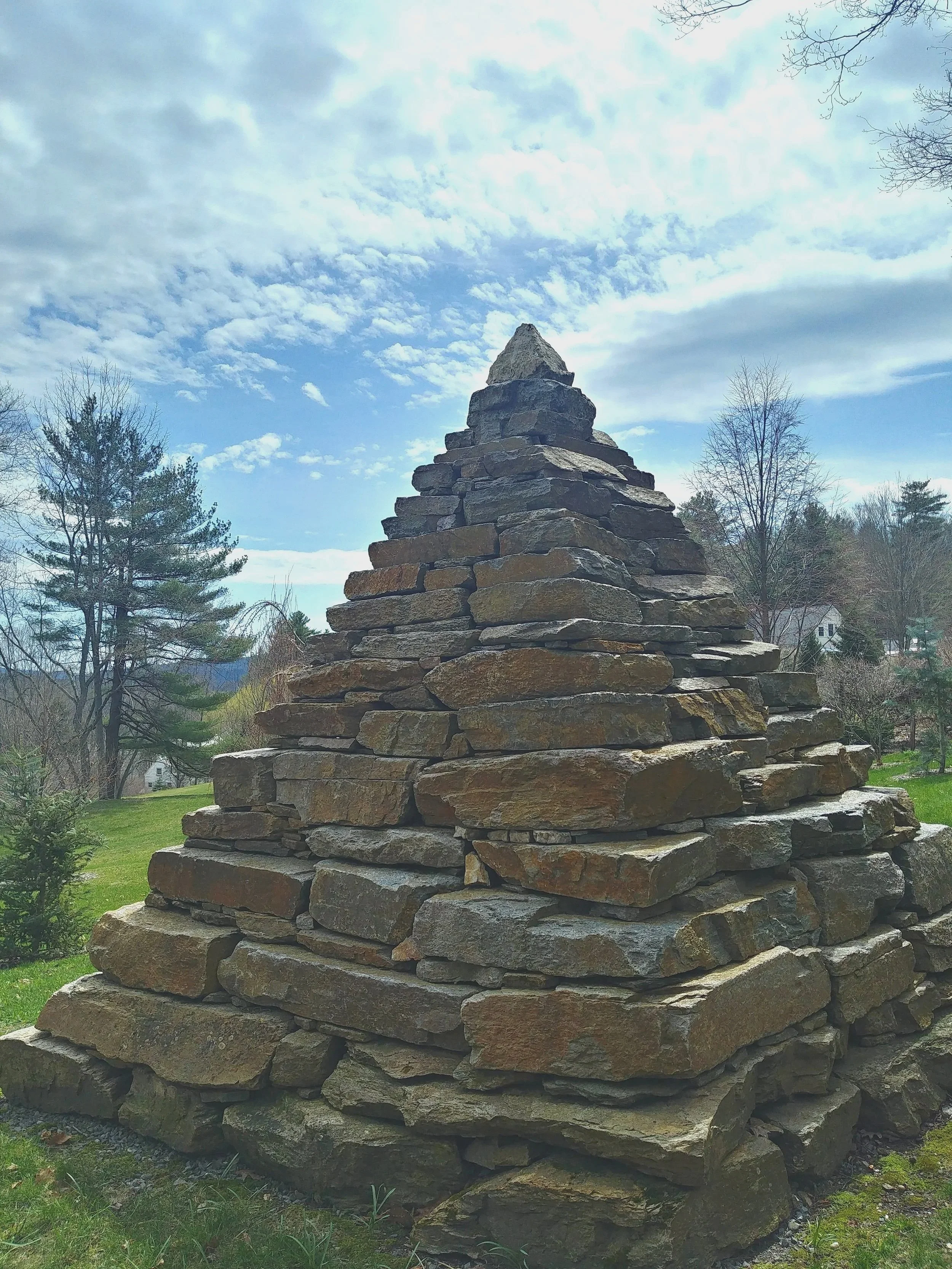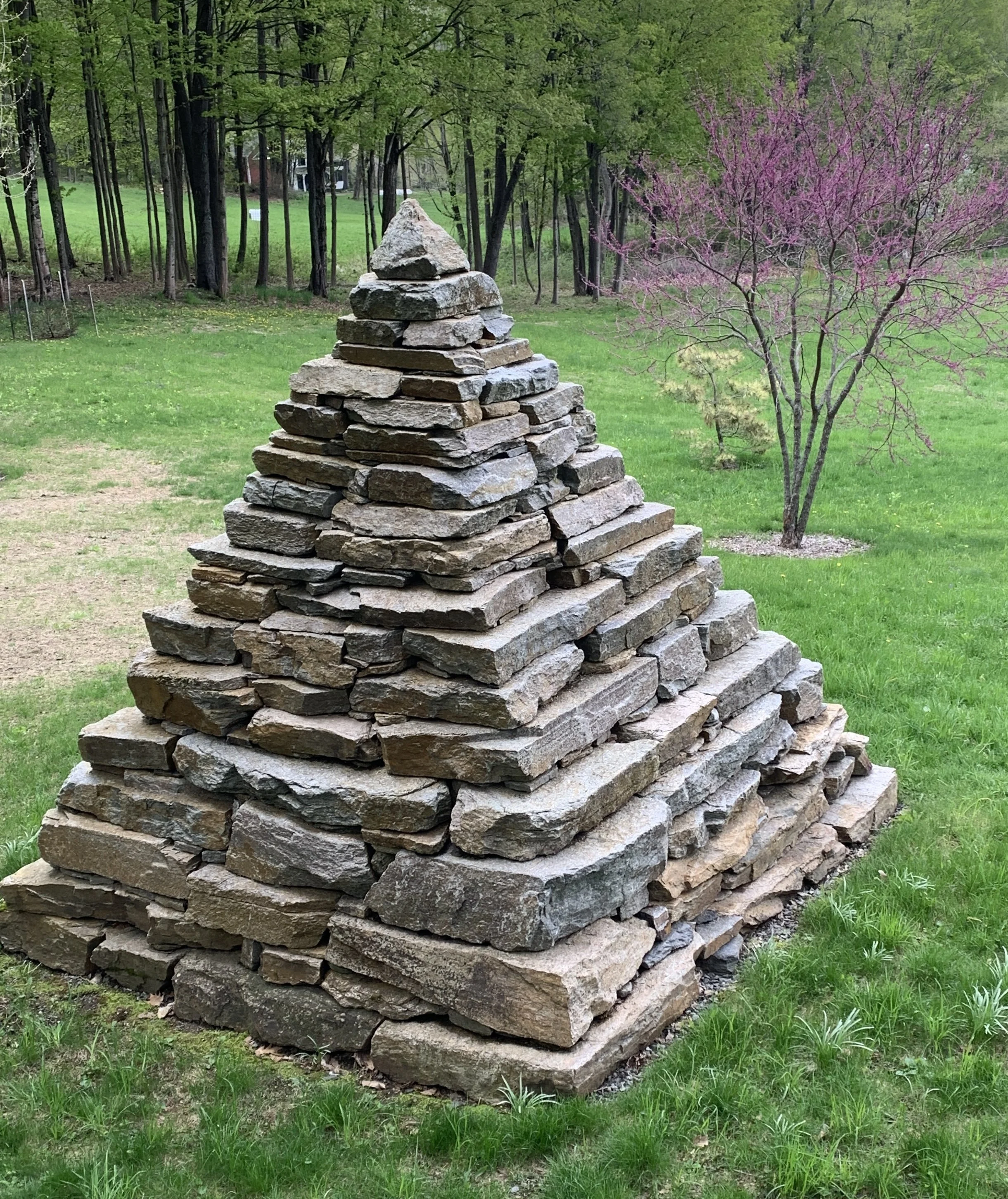 This 10’x10’x10’ dry-laid pyramid was built with stone from Unity, NH.